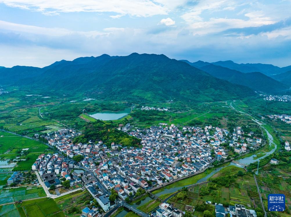 这是8月14日拍摄的诸暨市赵家镇花明泉村全景(无人机照片)。