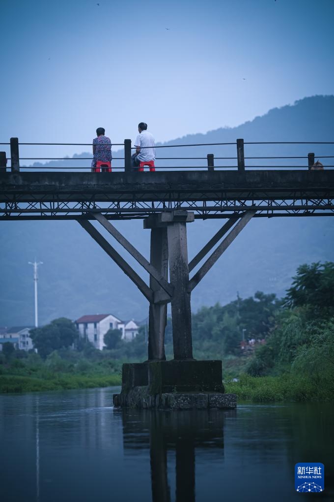 8月14日夜,诸暨市赵家镇花明泉村村民在村口跨越黄檀溪的桥上乘凉。