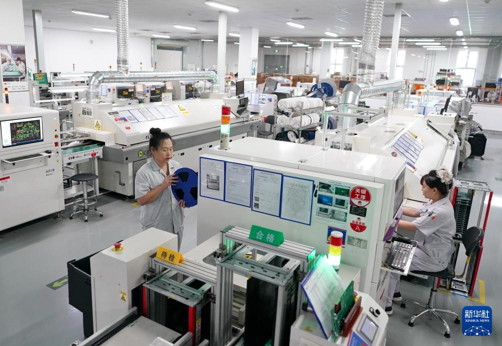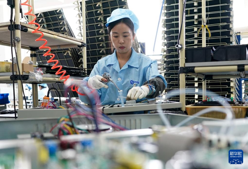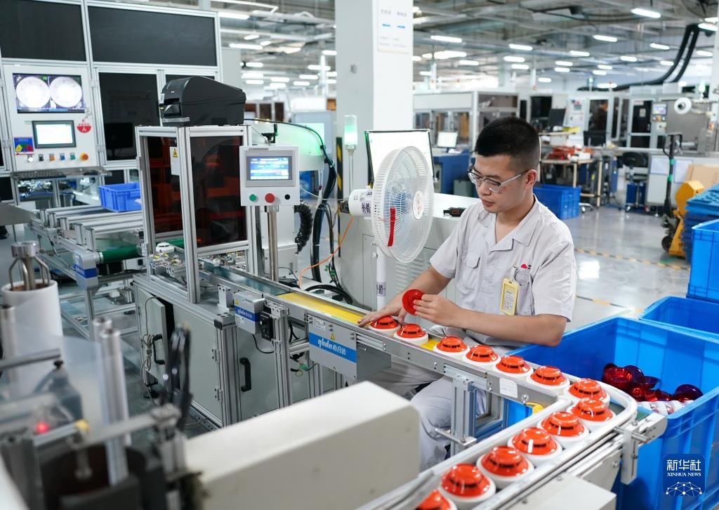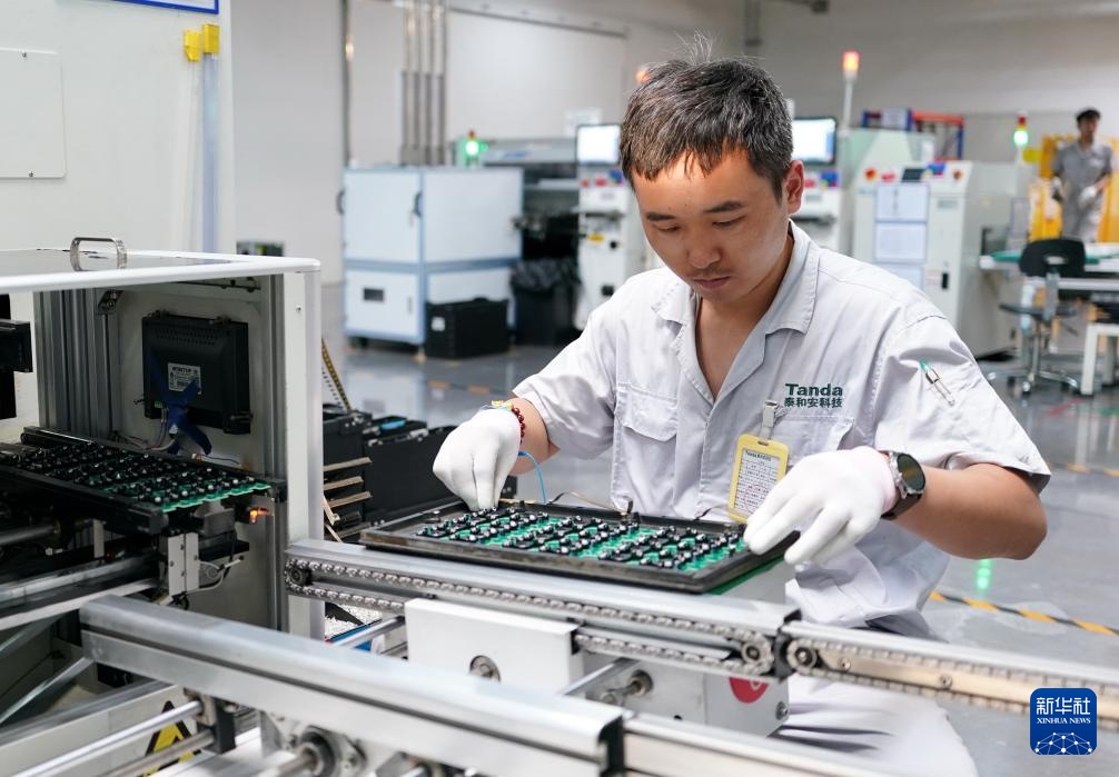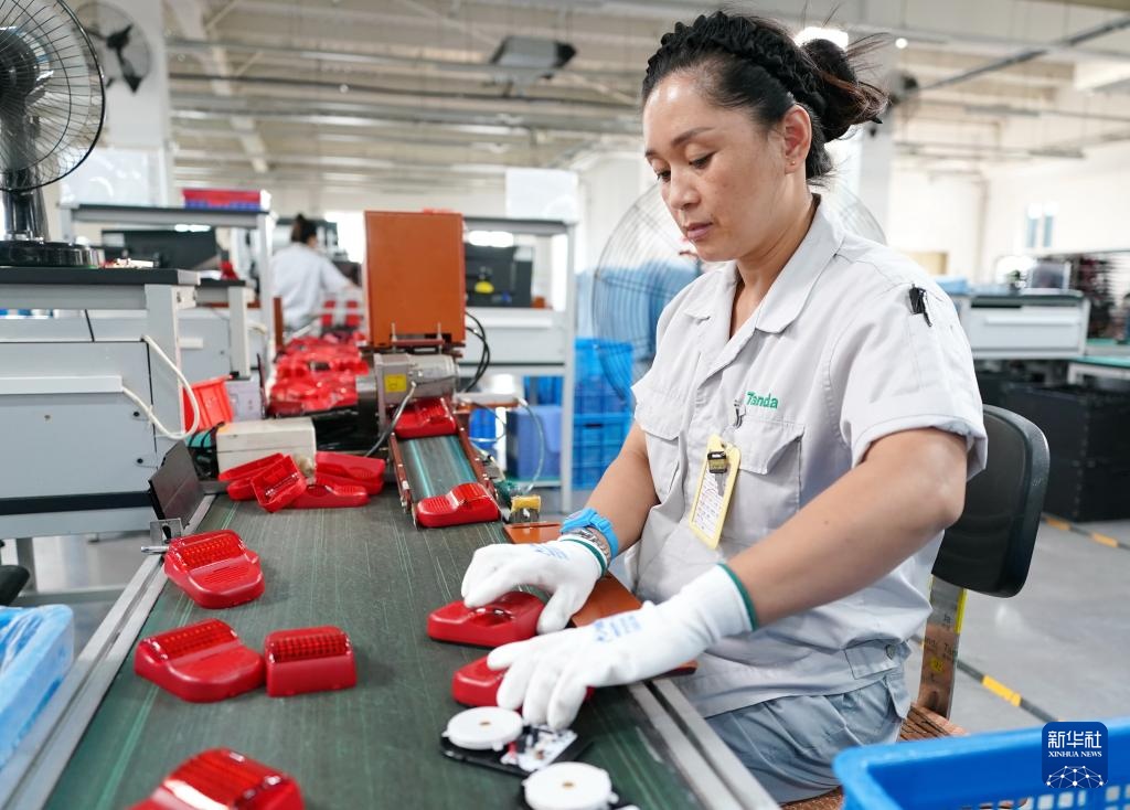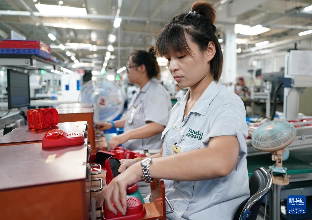 8月15日,工人在河北省秦皇岛经济技术开发区一家电子消防器材企业的生产车间工作。