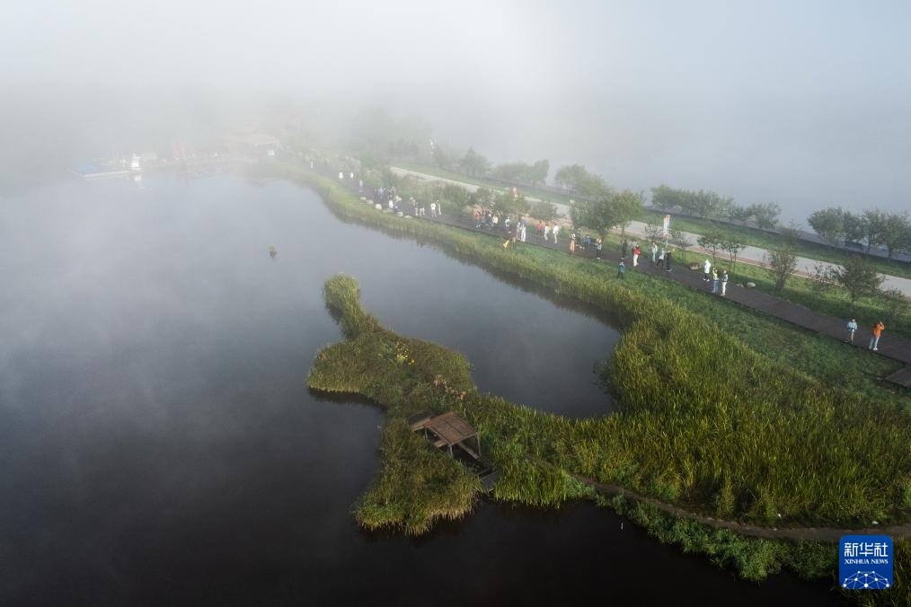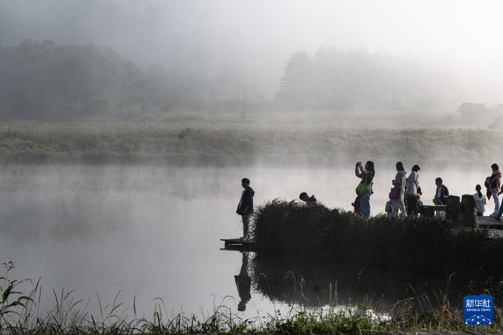 在“华中屋脊”湖北神农架深处有一片高山湿地,一条小溪串起9个湖泊,故名“大九湖”。天刚破晓,大九湖上晨雾缥缈,风光秀丽,游人仿佛置身于梦幻的世界。