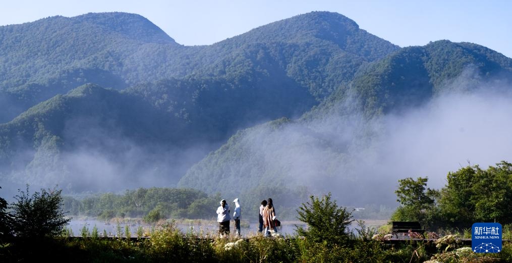 8月16日,游客在神农架大九湖国家湿地公园游览。