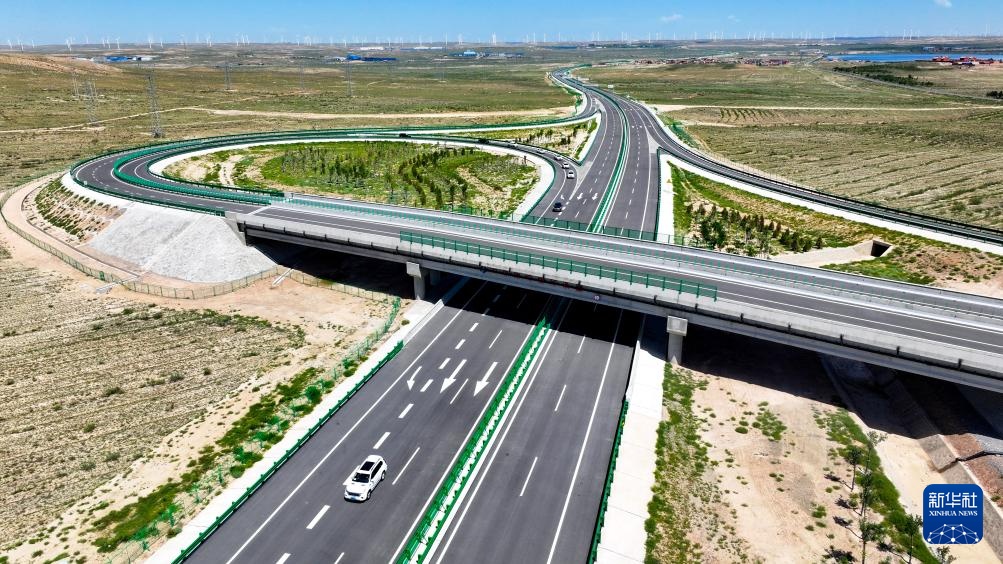 8月16日,车辆行驶在银昆高速太阳山南互通立交附近(无人机照片)。