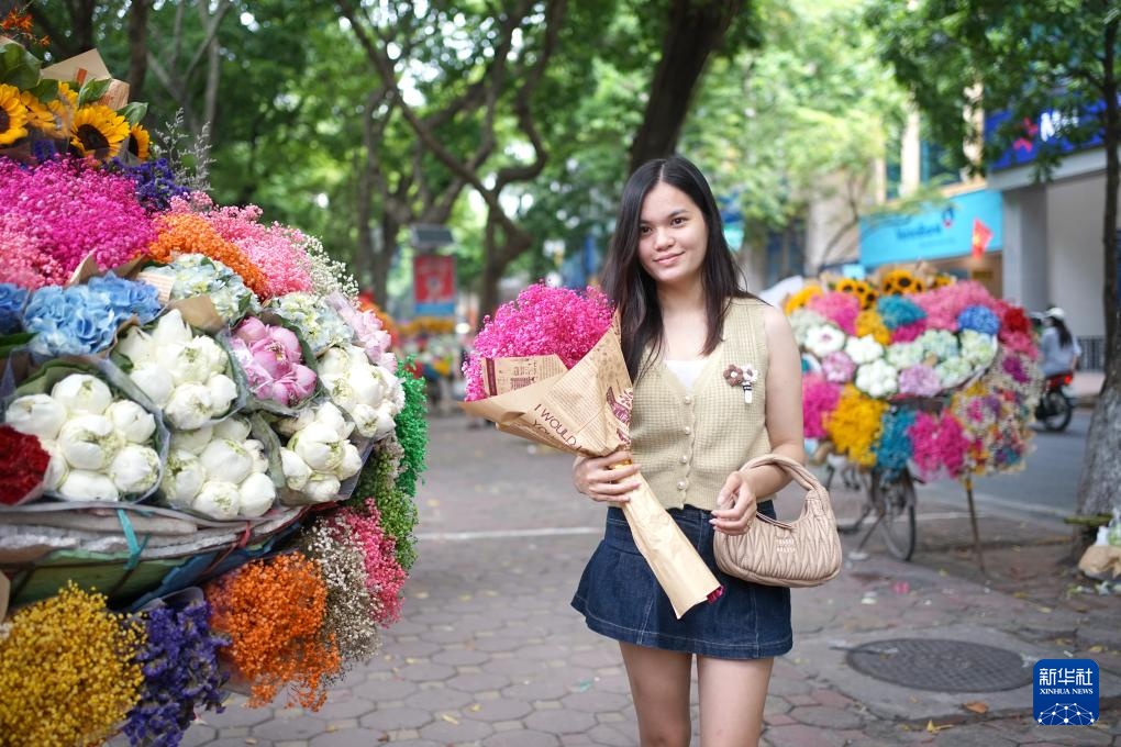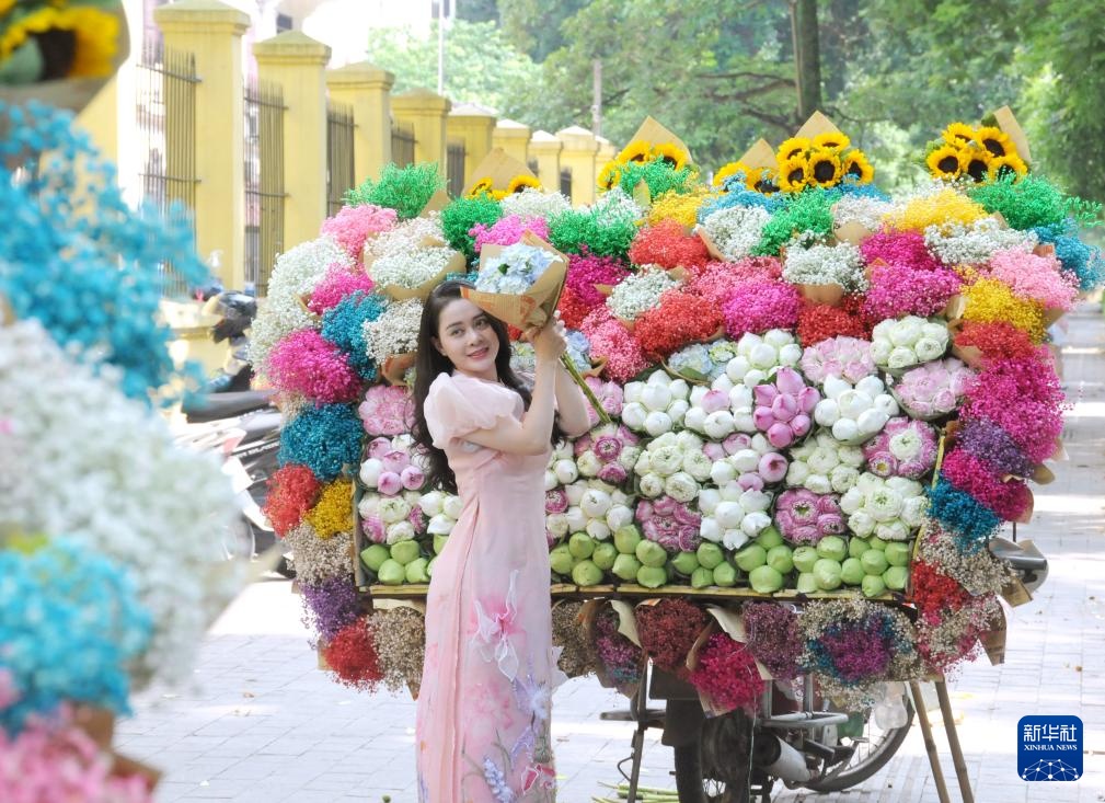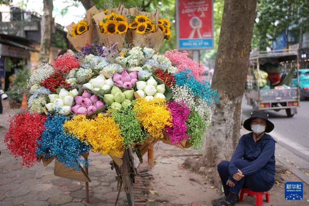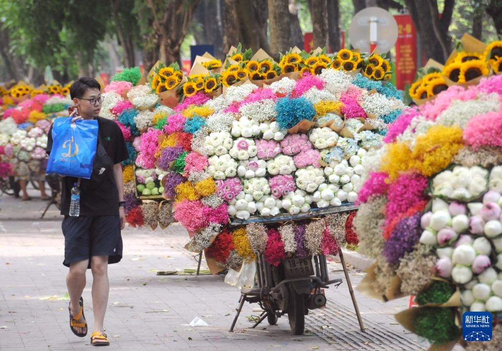越南首都河内是一座爱花的城市,夜晚的鲜花批发市场车水马龙,白昼里的卖花流动摊遍布大街小巷,多彩的鲜花点缀了河内的旖丽风光。