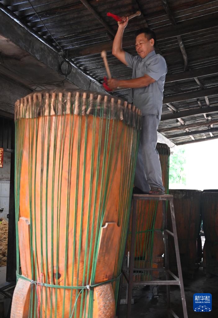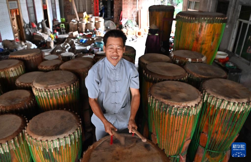 “我八九岁开始跟着爷爷学鼓,40多年来制作了大大小小的鼓2000多面。如今,几个孙子也在放假时跟着学做鼓。我相信,烟墩大鼓的制作技艺一定会一代代传下去的。”广西灵山县烟墩镇六加村委沙塘村村民施绍汉说。