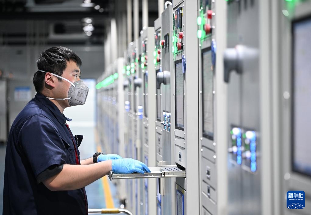 在位于济南市的山东中晶芯源半导体科技有限公司生产车间内,工作人员在对碳化硅单晶炉设备进行巡检(8月13日摄)。该生产基地由鲁信集团旗下鲁信创投投资引进,该项目将大幅提升国内8英寸碳化硅衬底产能,促进产业链上下游各行业融通发展。