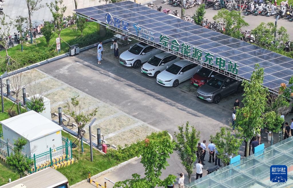 位于聊城图书馆旁的首座“光储充放检”综合能源充电站(8月15日摄,无人机照片)。该充电站由山东石油天然气股份有限公司(简称“山东油气”)投资的鲁昊新能源公司和充电网运营商合作运营。近年来,山东油气积极开拓新能源业务,通过投资智慧充电站项目布局新能源服务网络。目前已在聊城、临清等地投产充电站14座,充电终端151个。