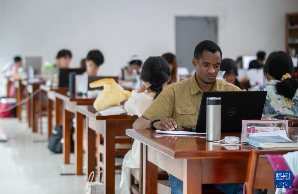 6月24日,阿布在华中师范大学的图书馆内自习。