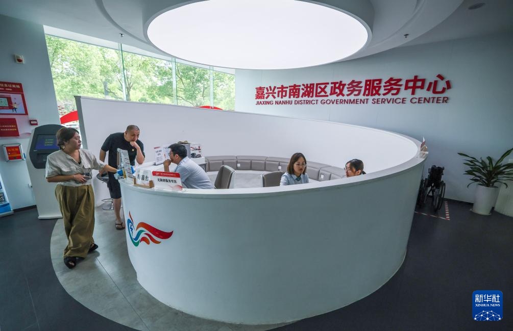 8月20日,群众在浙江省嘉兴市南湖区政务服务中心办理事项。嘉兴市南湖区全面推进“一网通办”线上线下一体融合,开展“到一窗办千件事”改革,2024年上半年“一网通办”办件率99.22%,办事满意率99.87%。