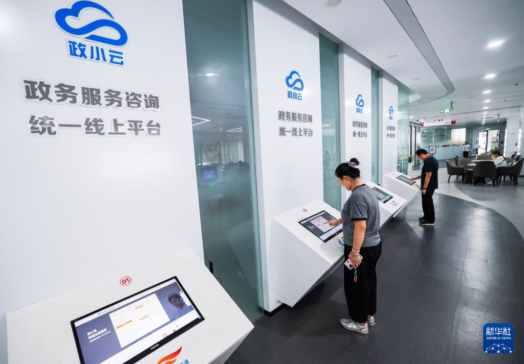 8月20日,在浙江省嘉兴市南湖区政务服务中心,群众在“政小云”政务服务咨询统一线上平台上咨询办理事项。嘉兴市南湖区全面推进“一网通办”线上线下一体融合,开展“到一窗办千件事”改革,2024年上半年“一网通办”办件率99.22%,办事满意率99.87%。