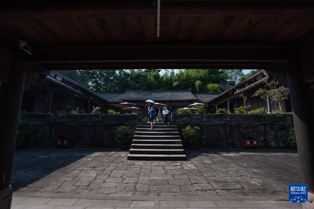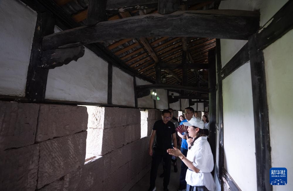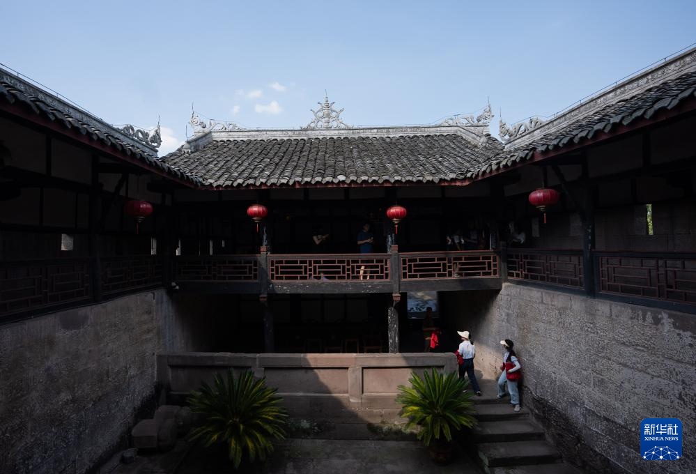 游客走进段家大院游览(8月20日摄)。段家大院是宝箴塞修建者段氏家族的生活起居空间。