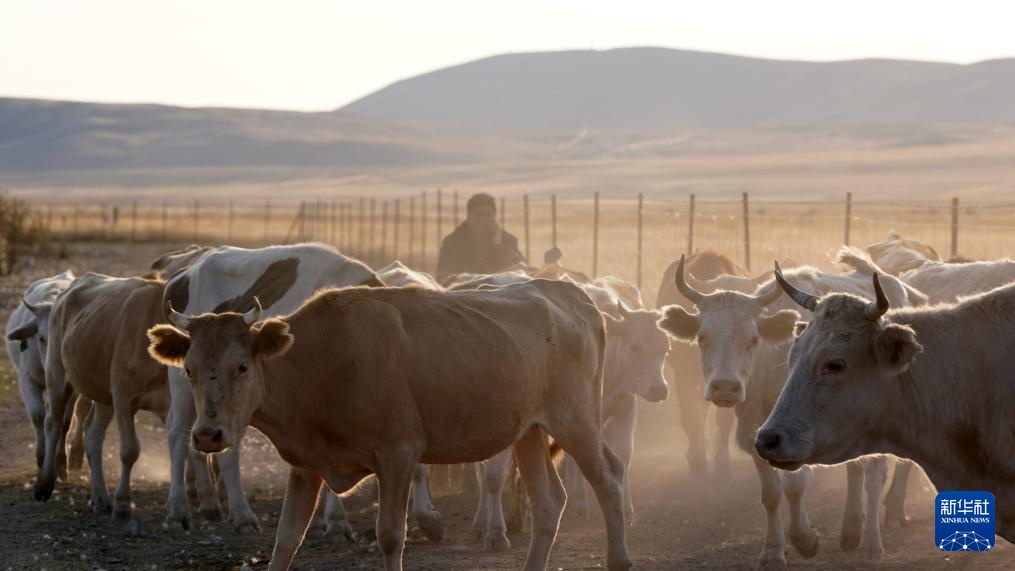 初秋时节,新疆生产建设兵团第九师165团的巴依木扎景区风景如画。“巴依木扎”哈萨克语意为“贵族的庄园”。这里紧靠中国和哈萨克斯坦边境,历史上曾是一条商业要道。在辽阔的牧场上,牧民骑着马或摩托车,赶着成群的牛羊行进在夕阳下,恰似一幅美丽的牧归图。
