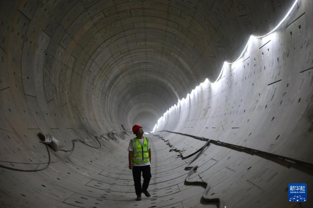8月21日,中铁上海局城建分公司工作人员在福州滨海快线福州火车站至东门站区间左线隧道内巡查。