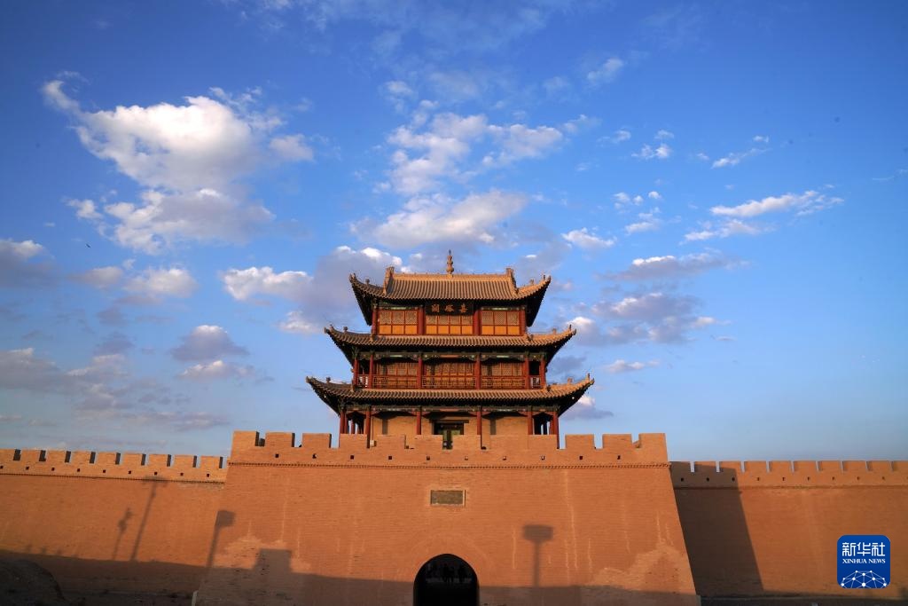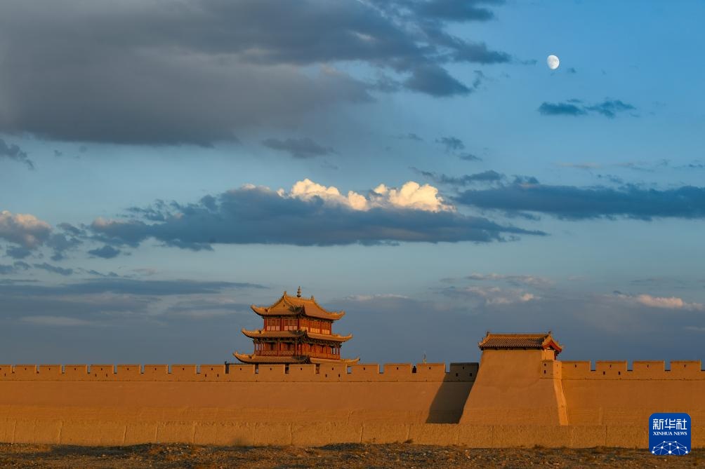 8月16日拍摄的夕阳下的嘉峪关关城。