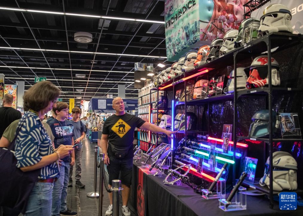 8月21日,人们在德国科隆举办的科隆国际游戏展上选购游戏周边产品。