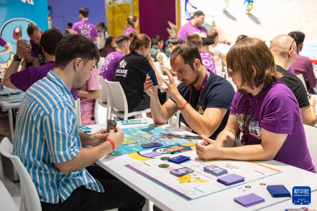 8月21日,人们在德国科隆举办的科隆国际游戏展上试玩卡牌类游戏。