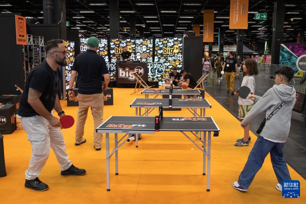 8月21日,人们在德国科隆举办的科隆国际游戏展上试玩迷你乒乓球。