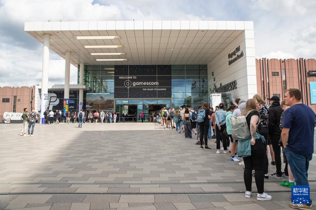 8月21日,人们在德国科隆举办的科隆国际游戏展上排队试玩游戏。