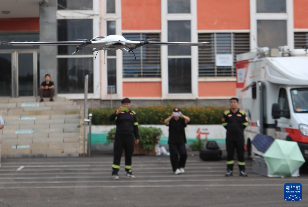 8月21日,在建昌县黑山科乡,来自辽宁省航协航空应急救援队的无人机进行灾后数据扫描。