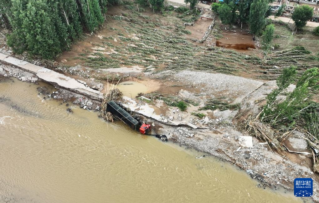 8月21日,在建昌县黑山科乡,一辆货车被洪水冲毁(无人机照片)。