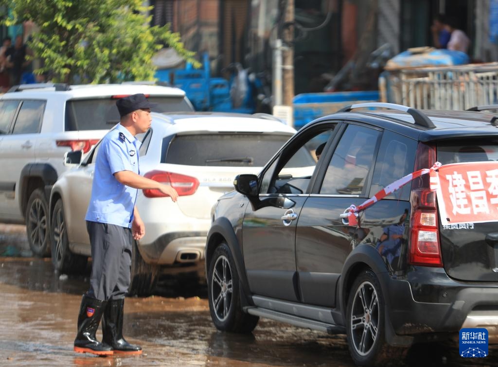 8月21日,在建昌县黑山科乡,派出所民警在指挥交通。