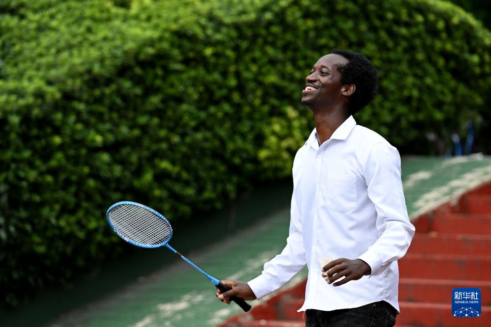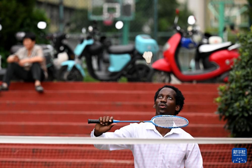 8月13日,在位于安徽省合肥市的安徽农业大学,孔七在校园里打羽毛球。