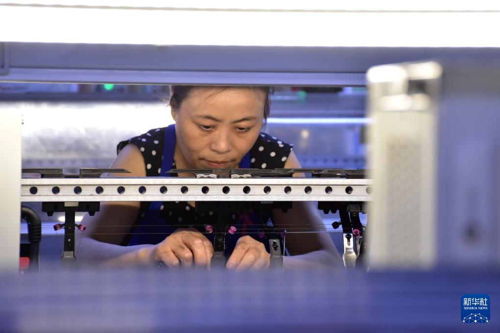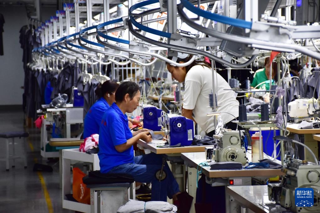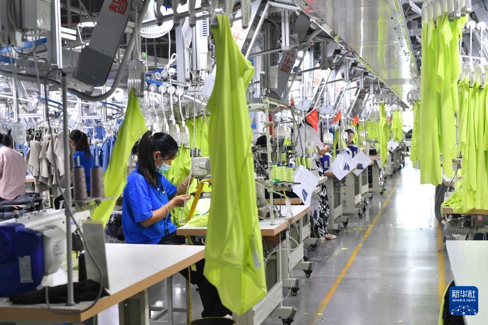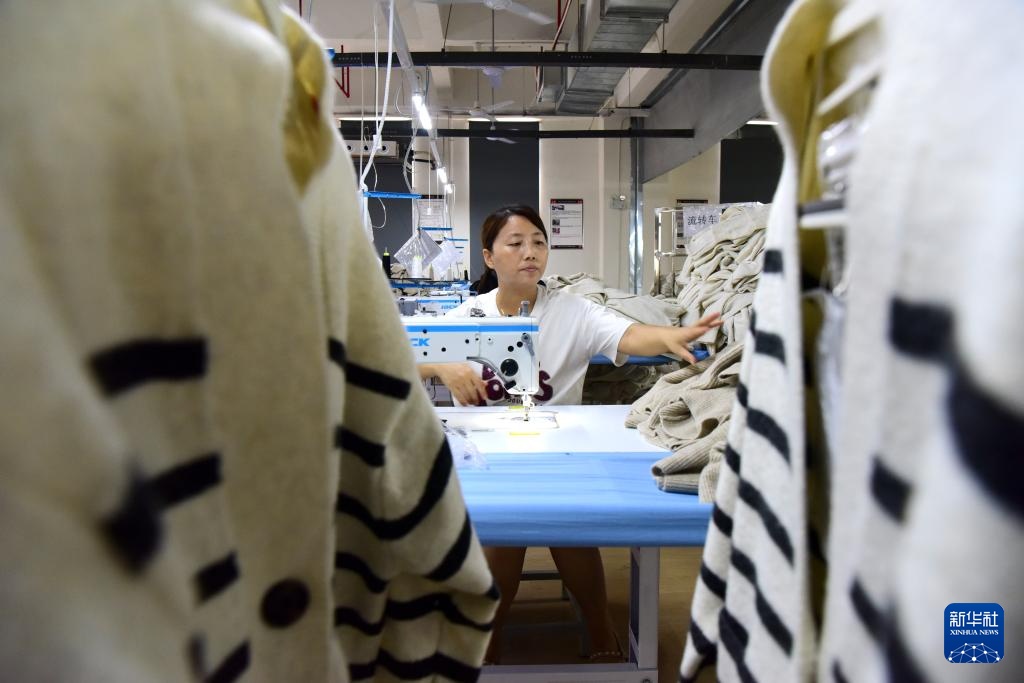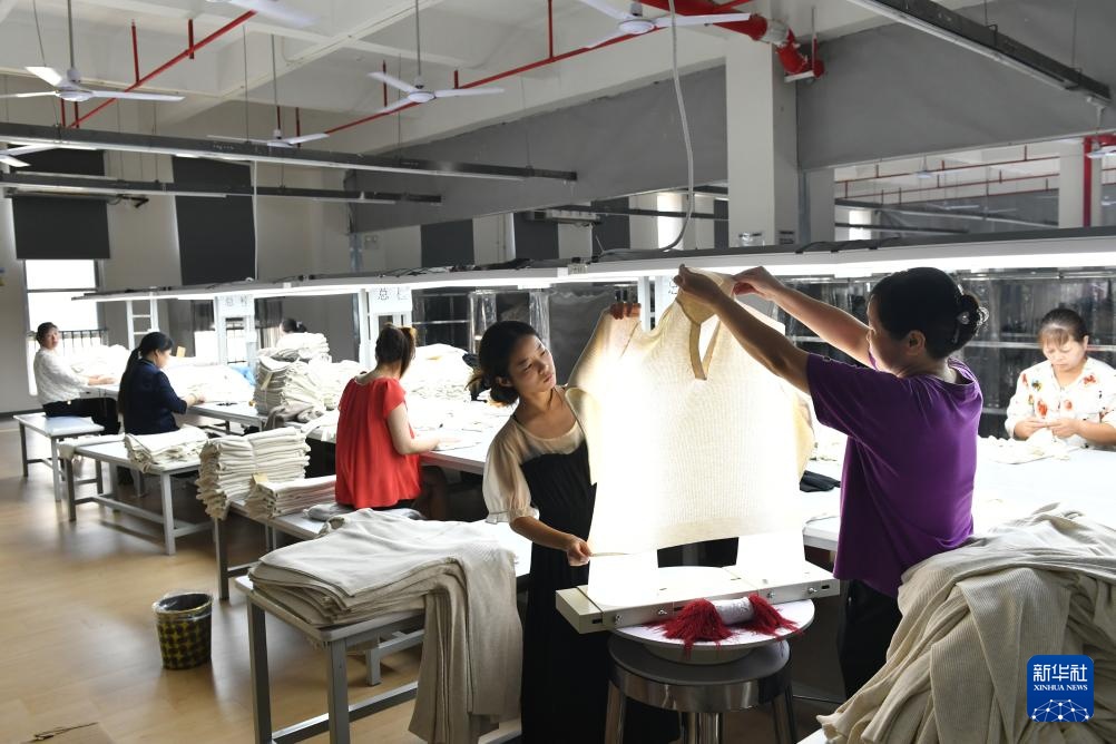 8月22日,工人在西平县一家服装企业生产线工作。