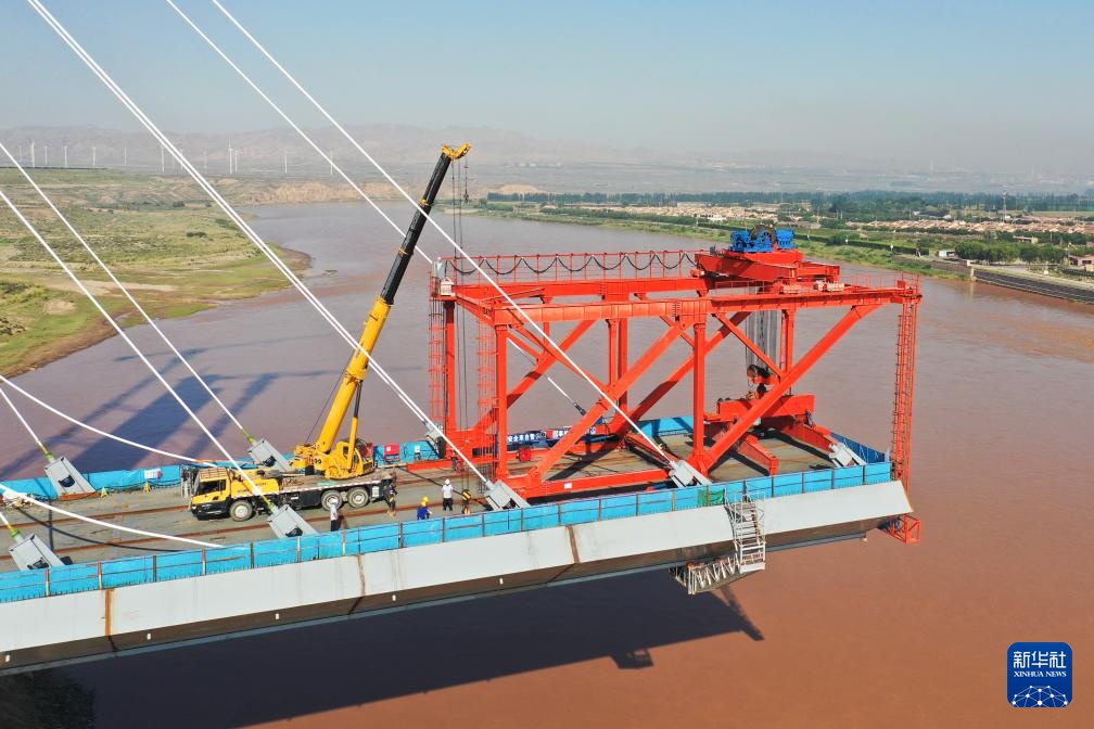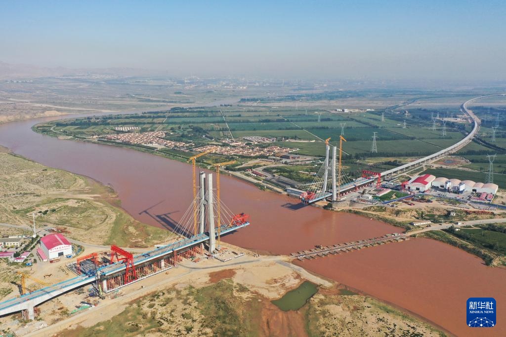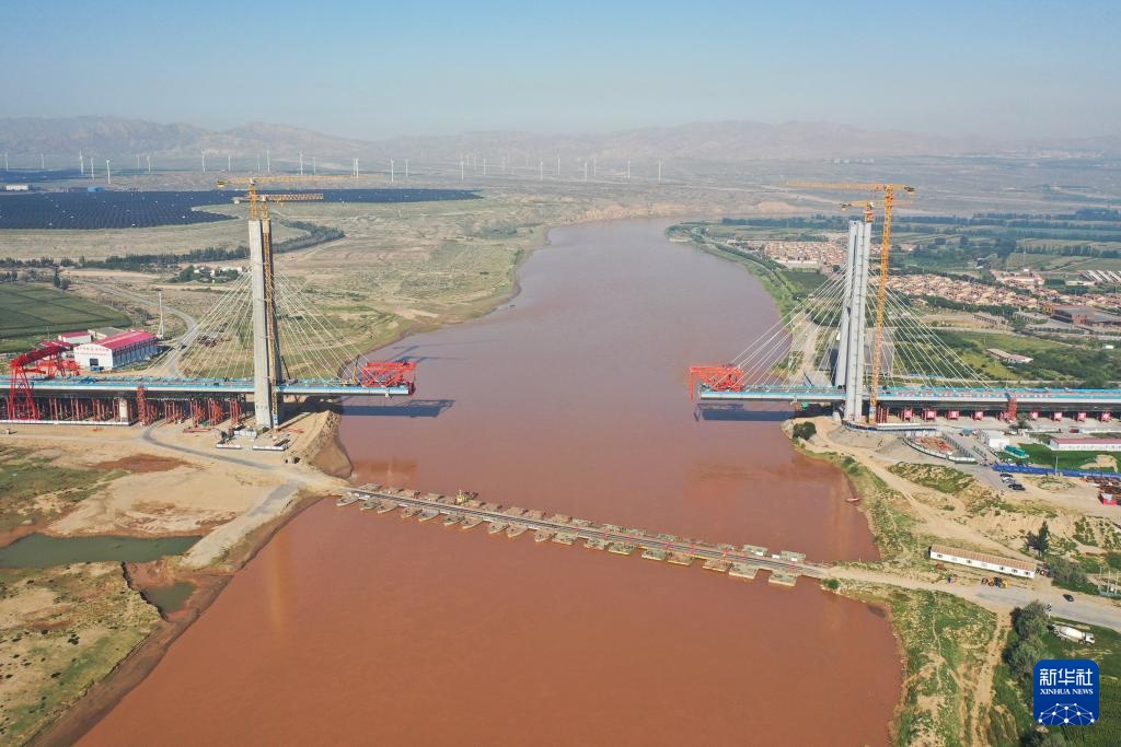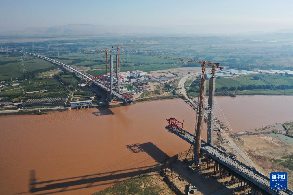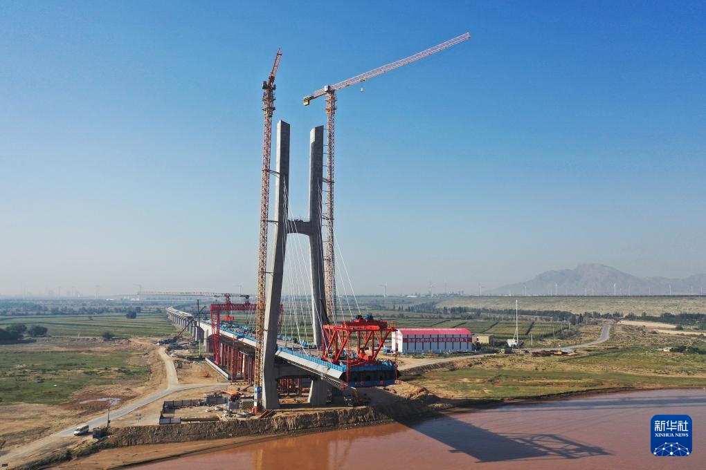 这是8月23日拍摄的包银高铁乌海黄河特大桥建设现场(无人机照片)。