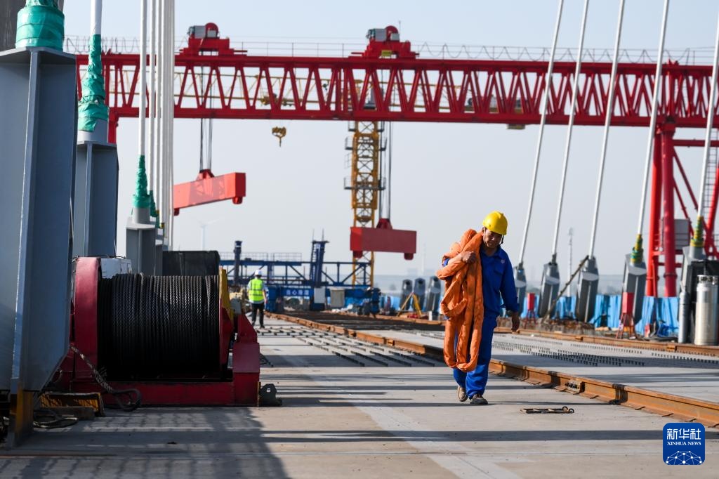 连日来,在包银高铁乌海黄河特大桥建设现场,工人们抓紧施工,确保工程建设进度。