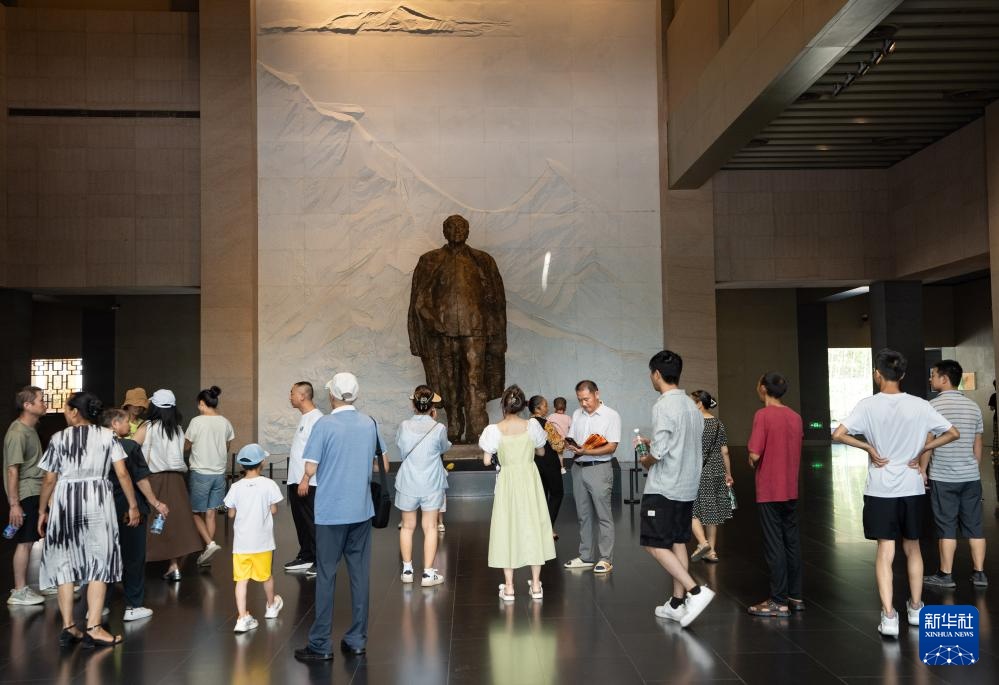 游客在邓小平故居陈列馆里参观(8月17日摄)。邓小平故里核心区是邓小平同志的诞生地,园区占地830亩,包含邓小平铜像广场、邓小平故居陈列馆、邓小平缅怀馆、邓小平故居等场所。