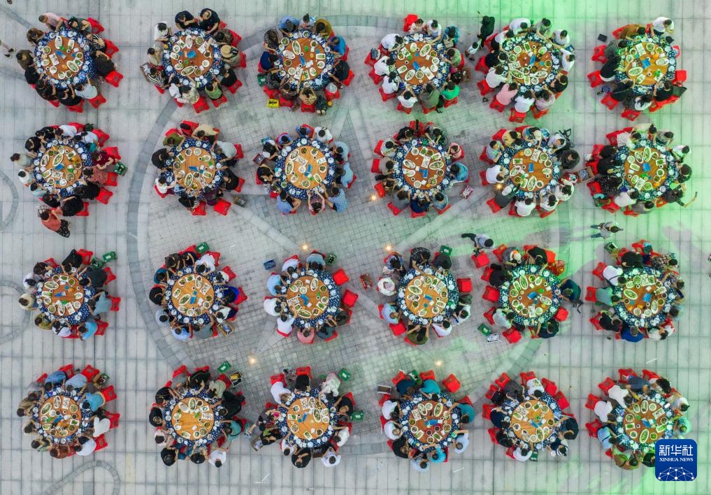 8月23日在岱山县长涂镇拍摄的海岛特色黄鱼宴(无人机照片)。