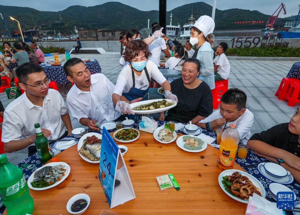 当日,浙江省舟山市岱山县长涂镇举行海岛特色黄鱼宴,并举办海岛共富集市,丰富游客旅游体验。