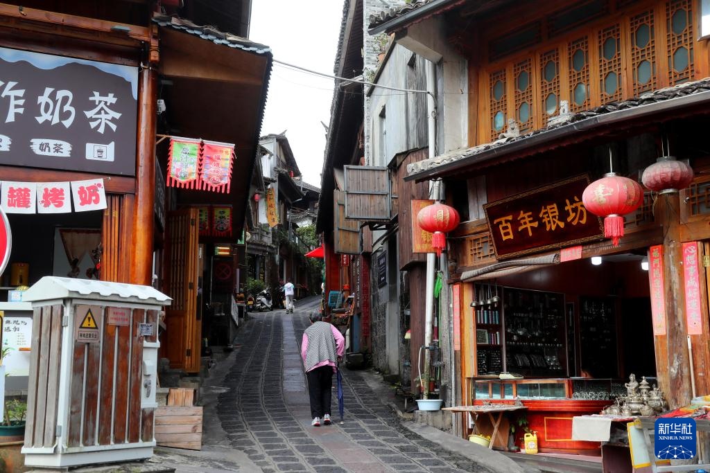 8月23日,一位老人漫步在和顺古镇里。