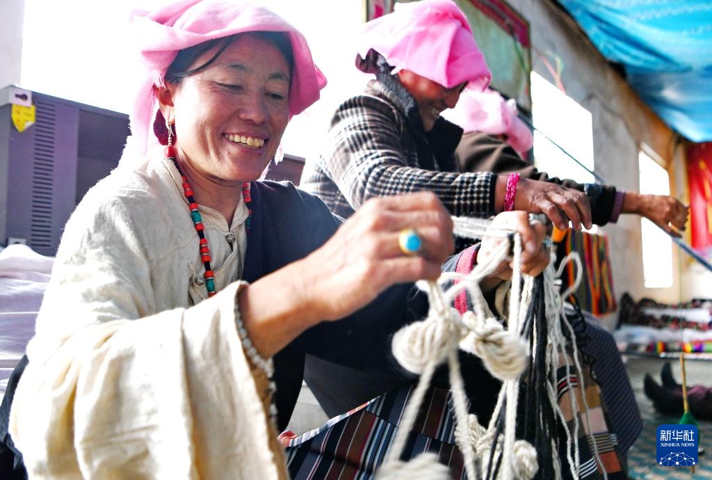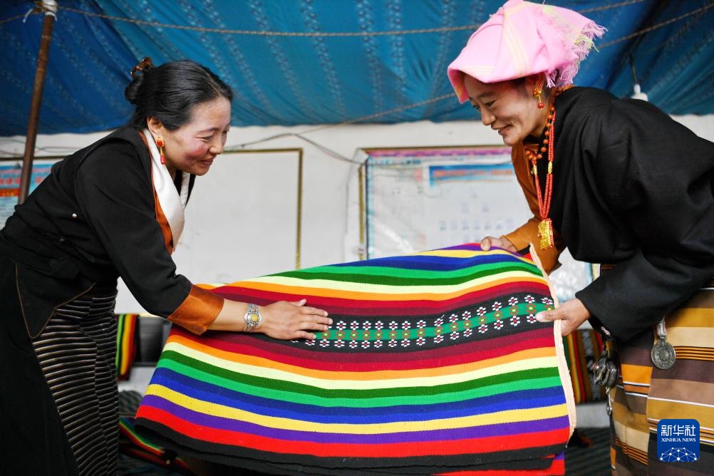 2023年以来,在海拔4000米以上的西藏那曲市色尼区木托村,村妇委会吸纳数十名妇女加入农民专业合作社,传承藏族编织技艺。“指尖”产品行销区内外,拓展了乡村振兴之路。