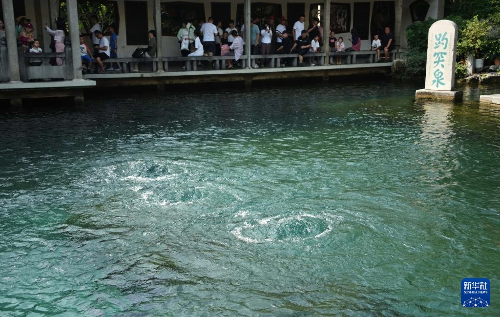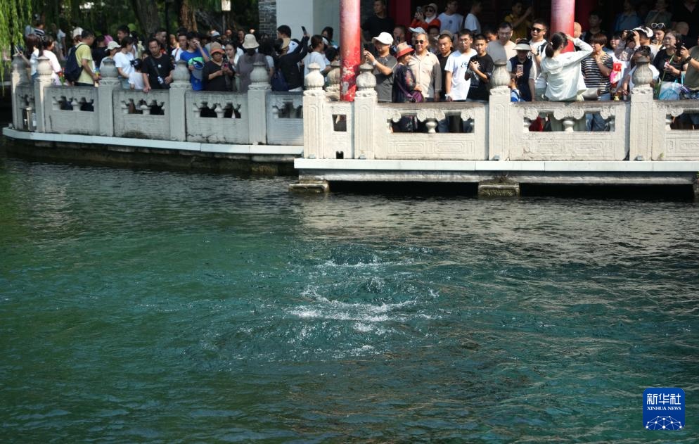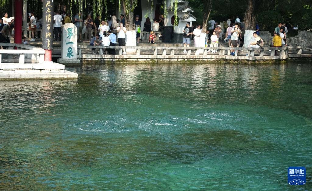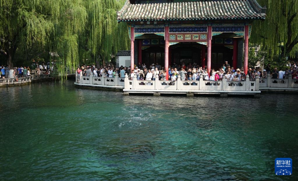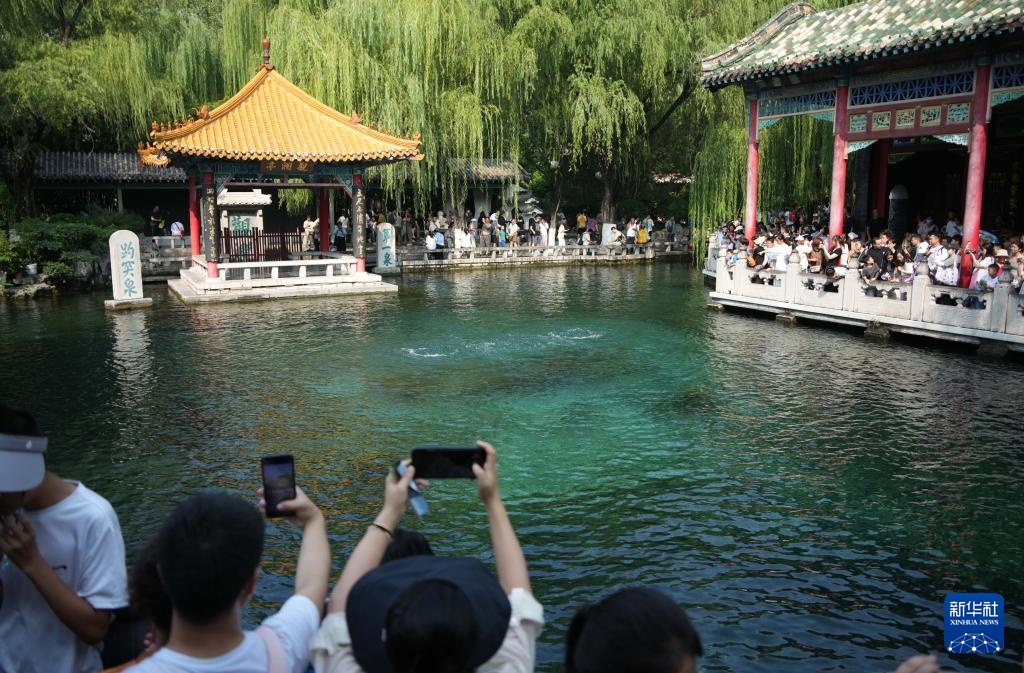 8月24日,游客在观赏趵突泉。
