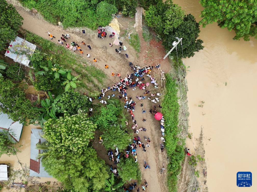 这是8月23日在孟加拉国库米拉拍摄的受灾村庄(无人机照片)。