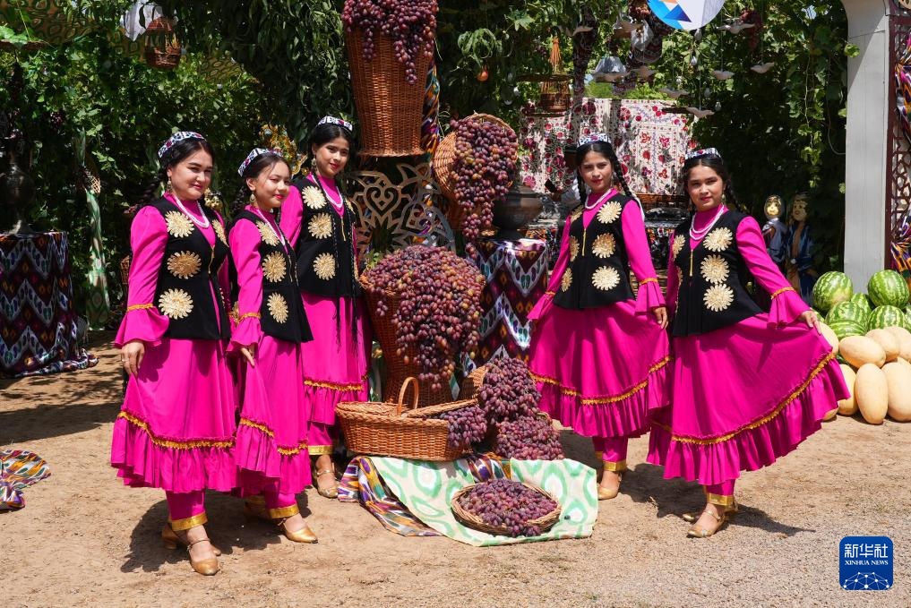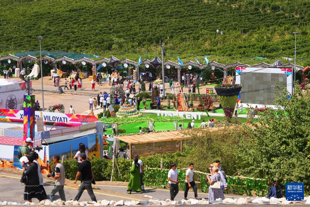 这是8月23日在乌兹别克斯坦塔什干州拍摄的葡萄栽培和酿酒节活动现场。