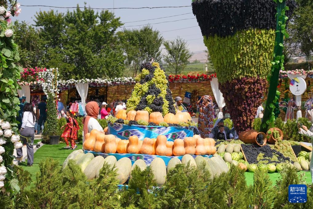 8月23日,在乌兹别克斯坦塔什干州,当地水果在葡萄栽培和酿酒节上展出。