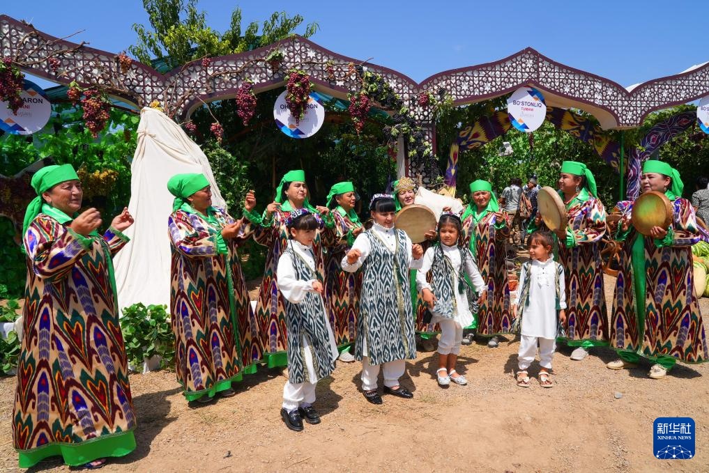 这是8月23日在乌兹别克斯坦塔什干州拍摄的葡萄栽培和酿酒节上的民俗文化表演。