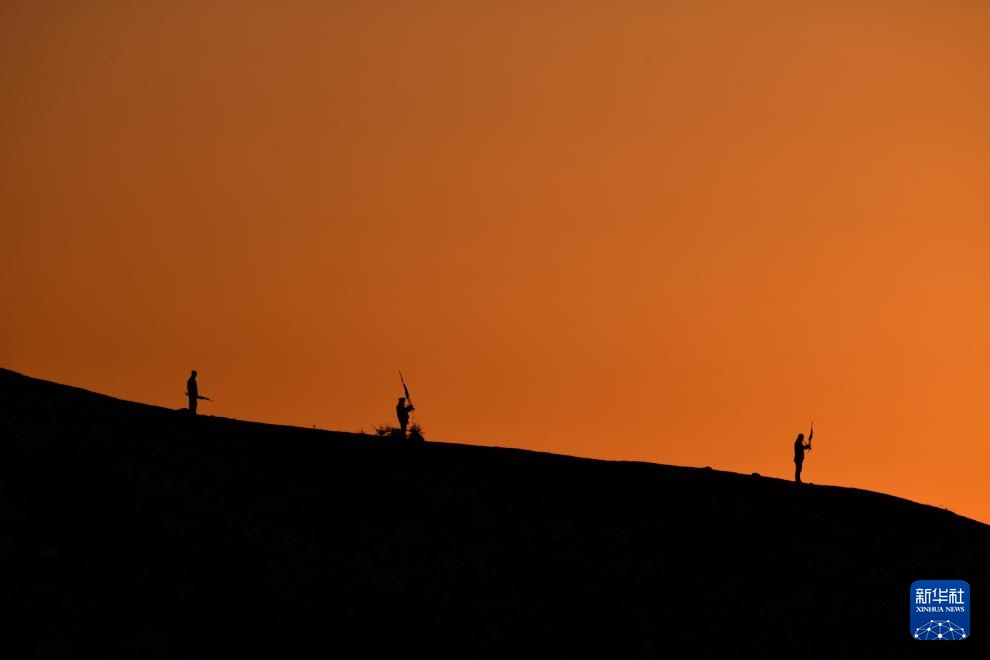 在广西柳州市融水苗族自治县杆洞乡尧告村高山牧场,村民在夕阳下练习吹芦笙(2021年1月18日摄)。