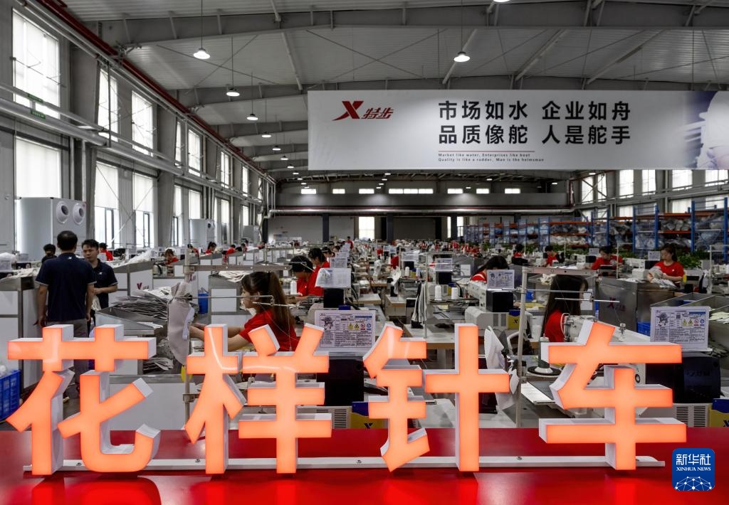 在特步集团的智能运动鞋生产线上,工人们在赶制出口订单(8月22日摄)。