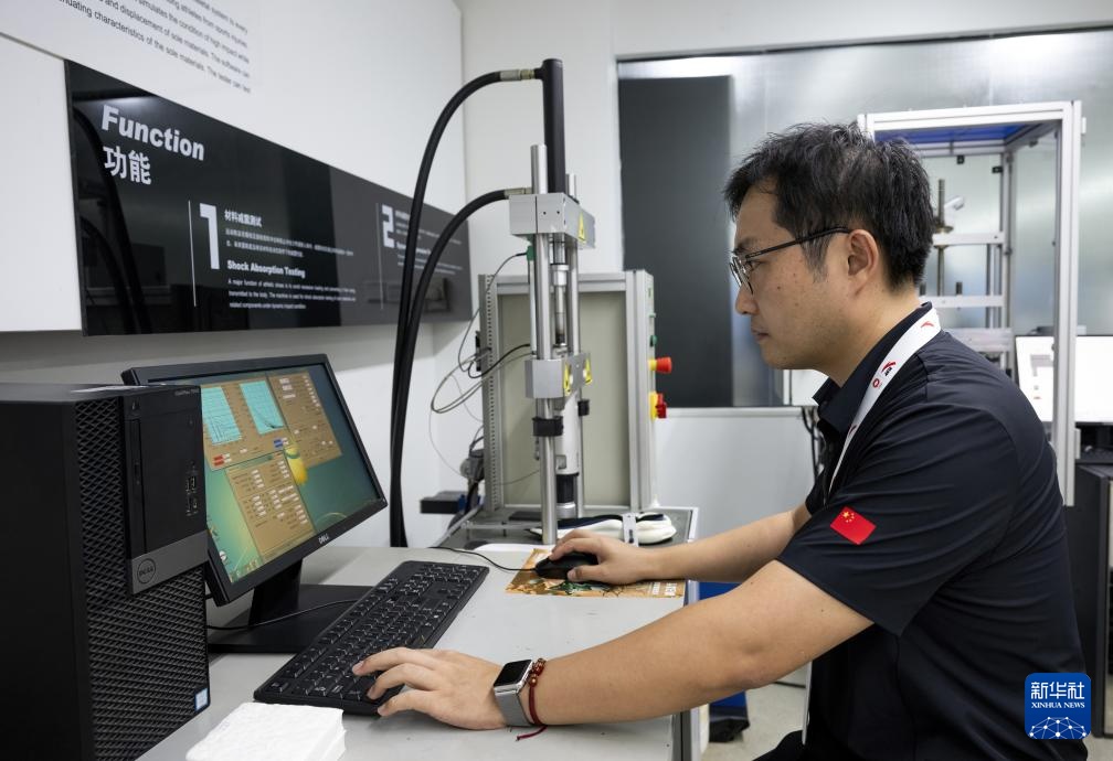 工作人员在安踏集团设立的运动科学实验室工作(8月22日摄)。近年来,安踏集团每年投入超10亿元的研发创新资金。