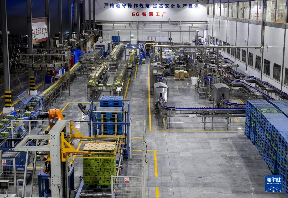 这是盼盼食品集团的5G智慧工厂饮料自动化生产车间(8月23日摄)。盼盼食品集团年营收81亿元,产品远销50多个国家和地区。