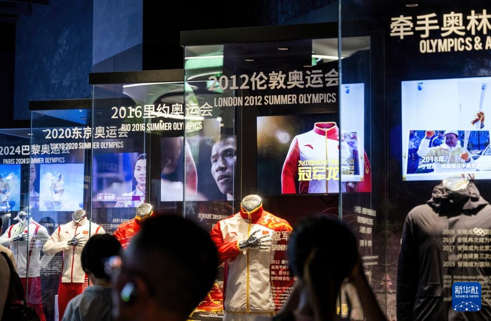 这是在安踏集团设立的博物馆里摆放的安踏集团与奥林匹克运动“牵手”的展柜(8月22日摄)。