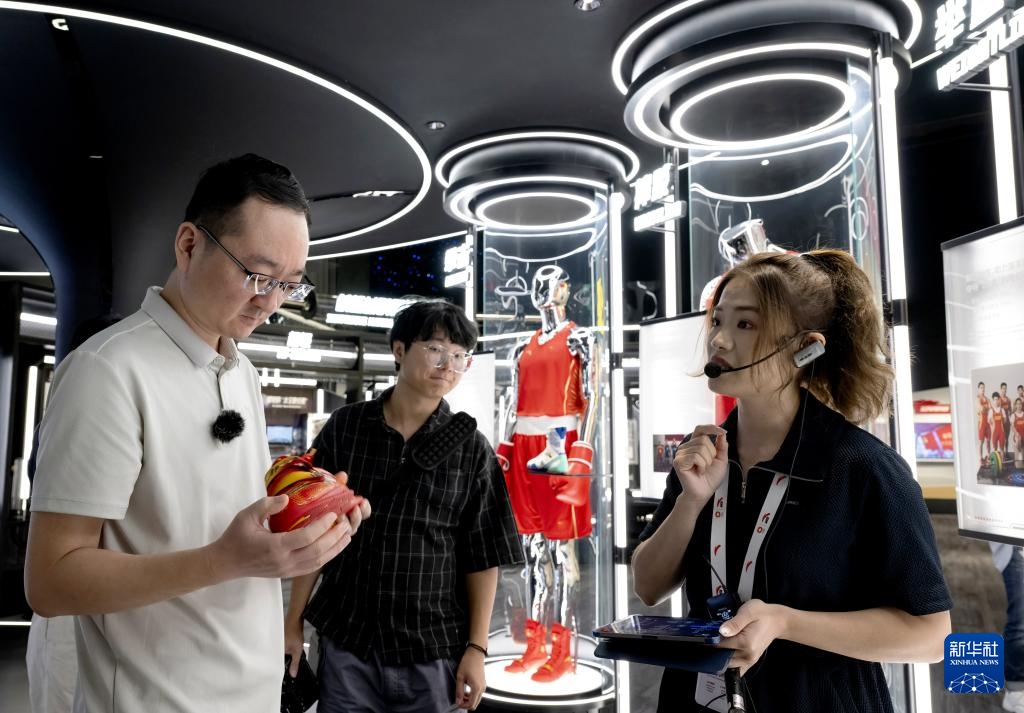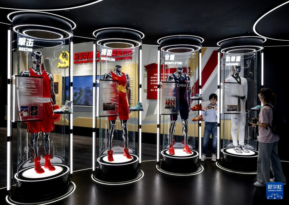人们在安踏集团设立的博物馆和数字化智慧运动综合体——安踏982创动空间参观(8月22日摄)。