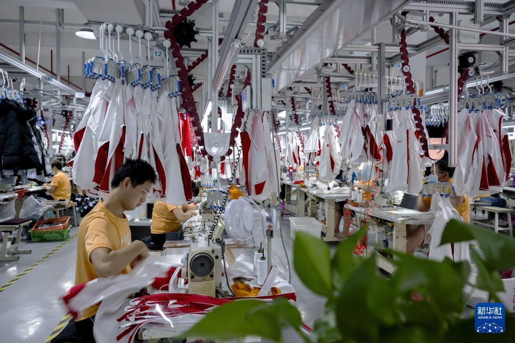 8月23日拍摄的361度晋江五里服装基地“5G+智慧工厂”项目生产线。