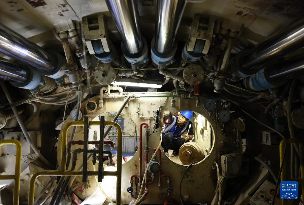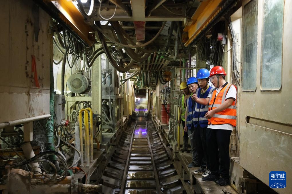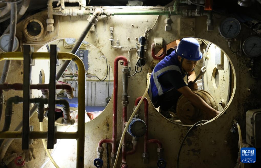 8月25日,施工人员在盾构始发前检查刀头舱设备状况。