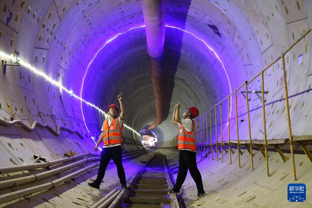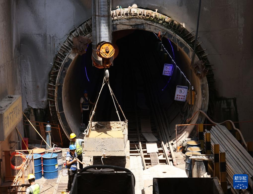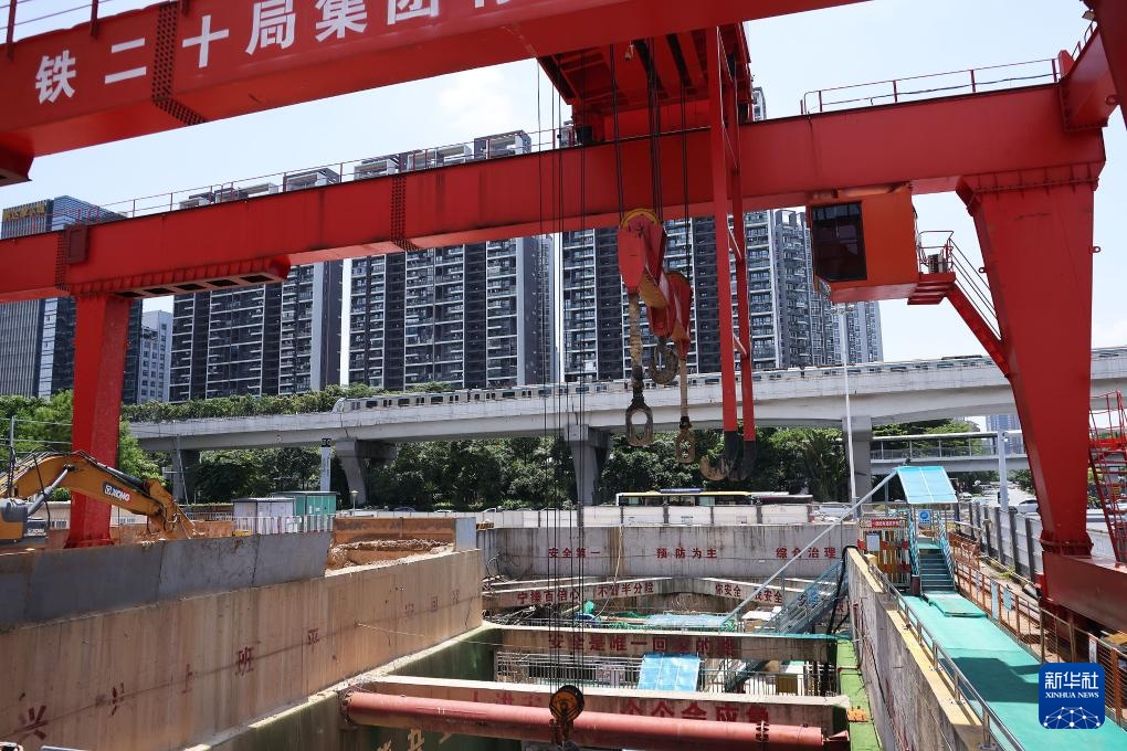 深圳地铁16号线共建管廊项目出线井至9号综合井区间盾构施工现场紧临地铁线路(8月25日摄)。