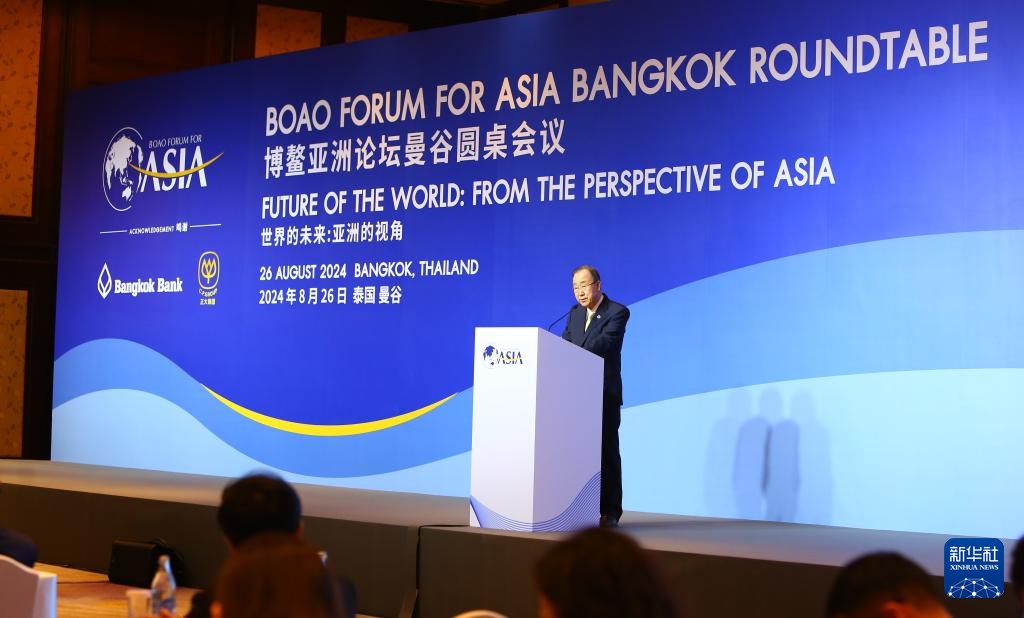 8月26日,在泰国曼谷,联合国前秘书长、博鳌亚洲论坛理事长潘基文在圆桌会议上致辞。