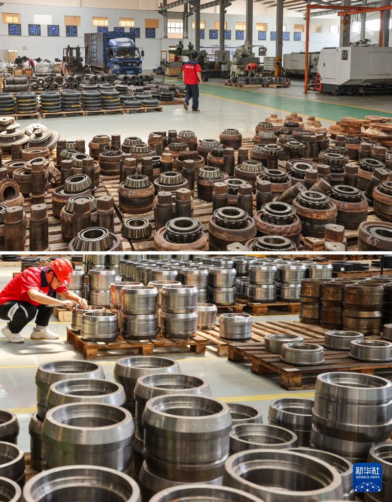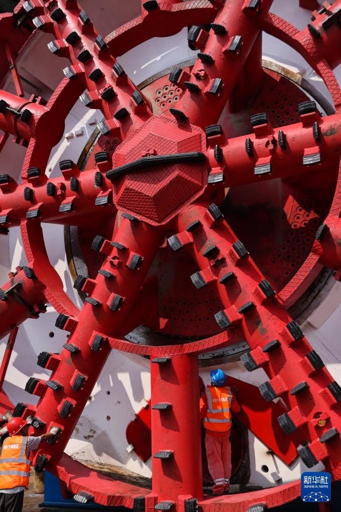8月27日,施工人员在组装一台经过再制造的大直径盾构机刀盘。这台2010年出厂的盾构机本已到报废年限,经过设备再制造,性能还得到进一步提升。