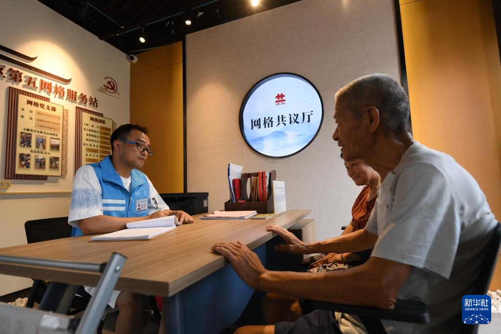 8月27日,在越都社区网格驿站,专职网格员在记录居民需求。